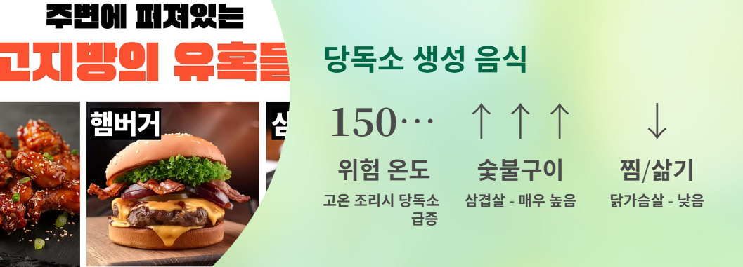 안녕하세요 :) 요즘 건강에 관심을 갖게 되면서 '당독소'라는 단어를 자주 마주하게 되더라고요. 저는 원래 구운 음식, 특히 바삭하게 튀겨진 닭이나 노릇하게 구워진 삼겹살을 정말 좋아하는데요. 그런데 최근 건강정보 프로그램에서 "이런 음식들이 체내 당독소를 급격히 증가시킨다"는 내용을 듣고 꽤 충격을 받았어요.